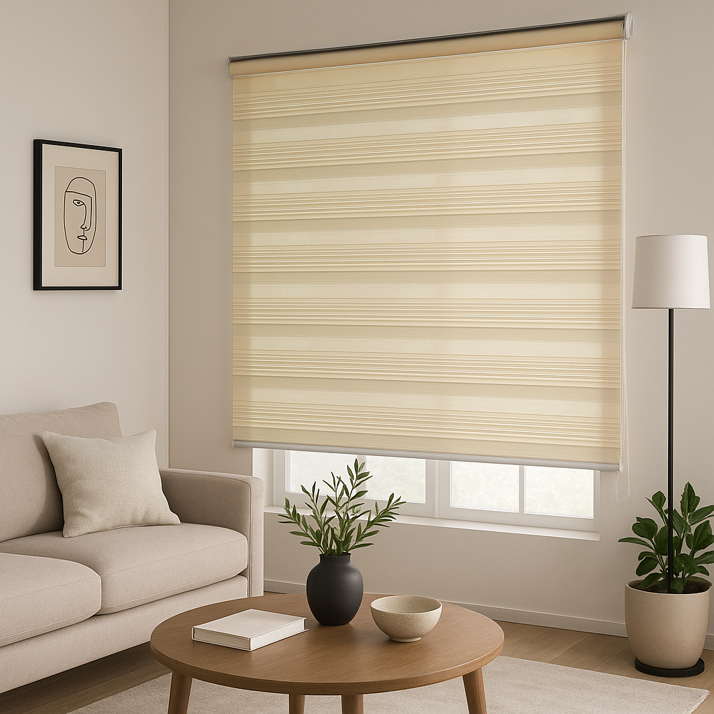 Diseñada como una cortina enrollable tipo persiana, la Flora Ivory es ideal para hogares, oficinas o espacios comerciales, adaptándose fácilmente a ambientes minimalistas, modernos o clásicos. Su sistema de franjas permite alternar entre privacidad y entrada de luz suave, según la necesidad del momento.