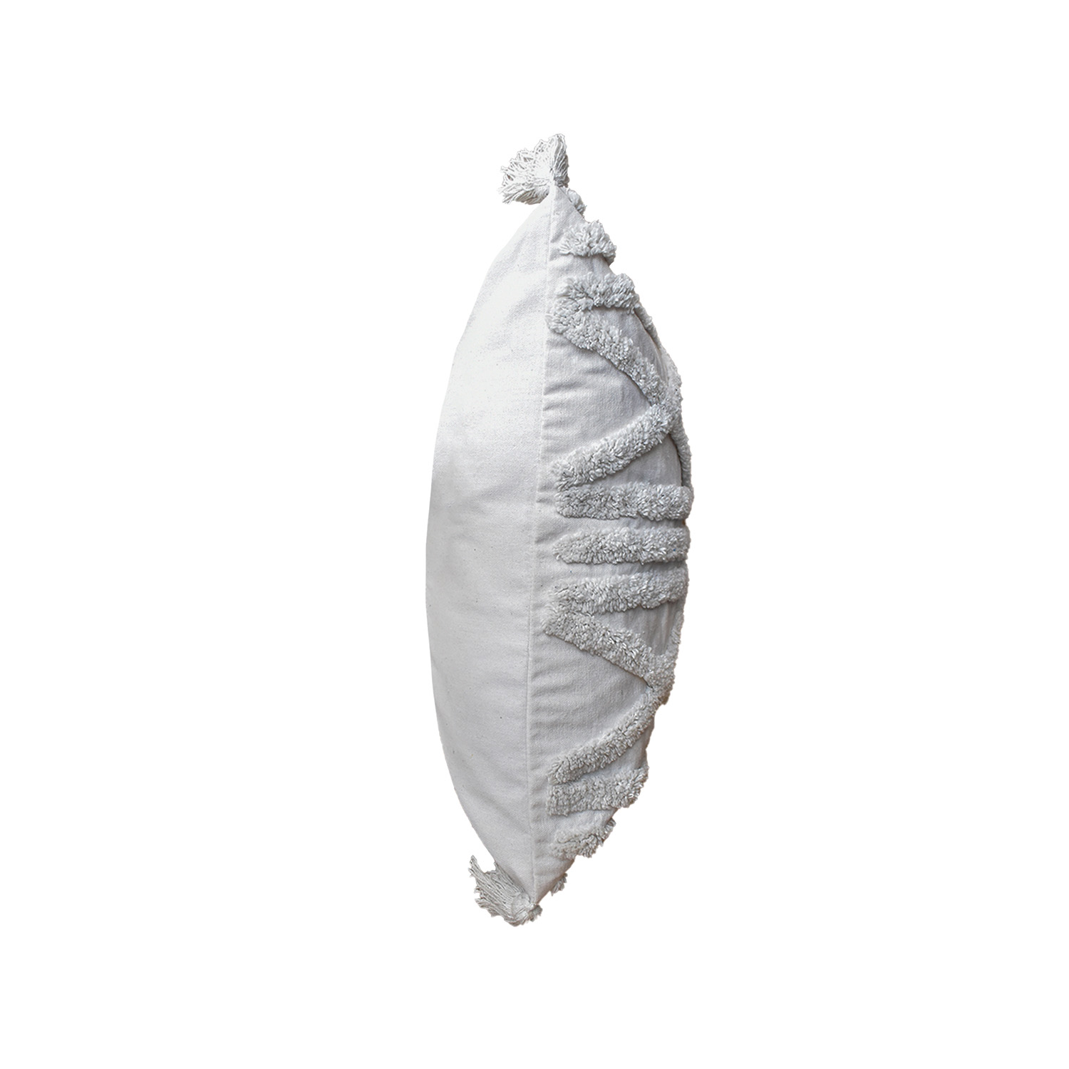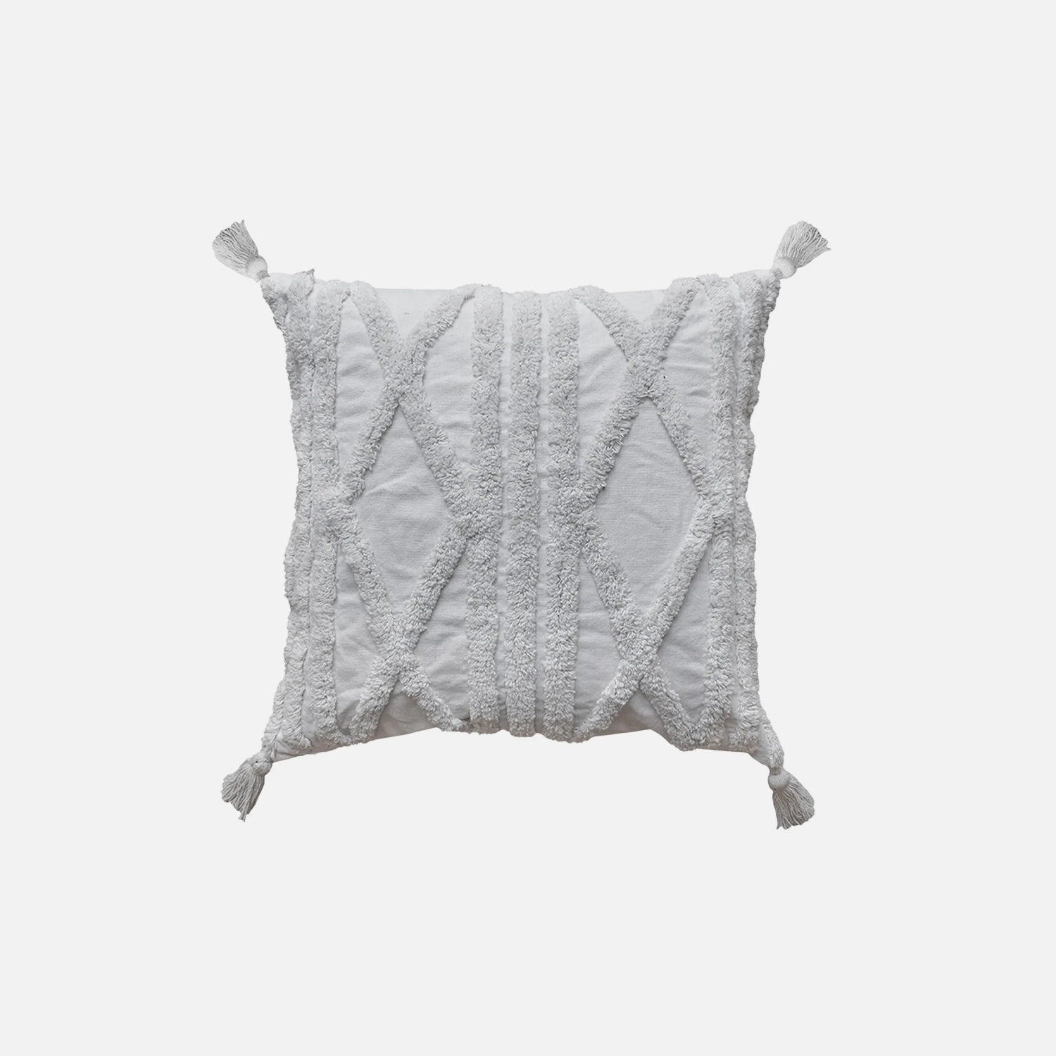 Funda con Cojín Rustic 45×45 cm en algodón 100 %. Con relieve geométrico sutil, borlas artesanales y relleno incluido, ideal para aportar elegancia discreta en sofás, camas o poltronas.
