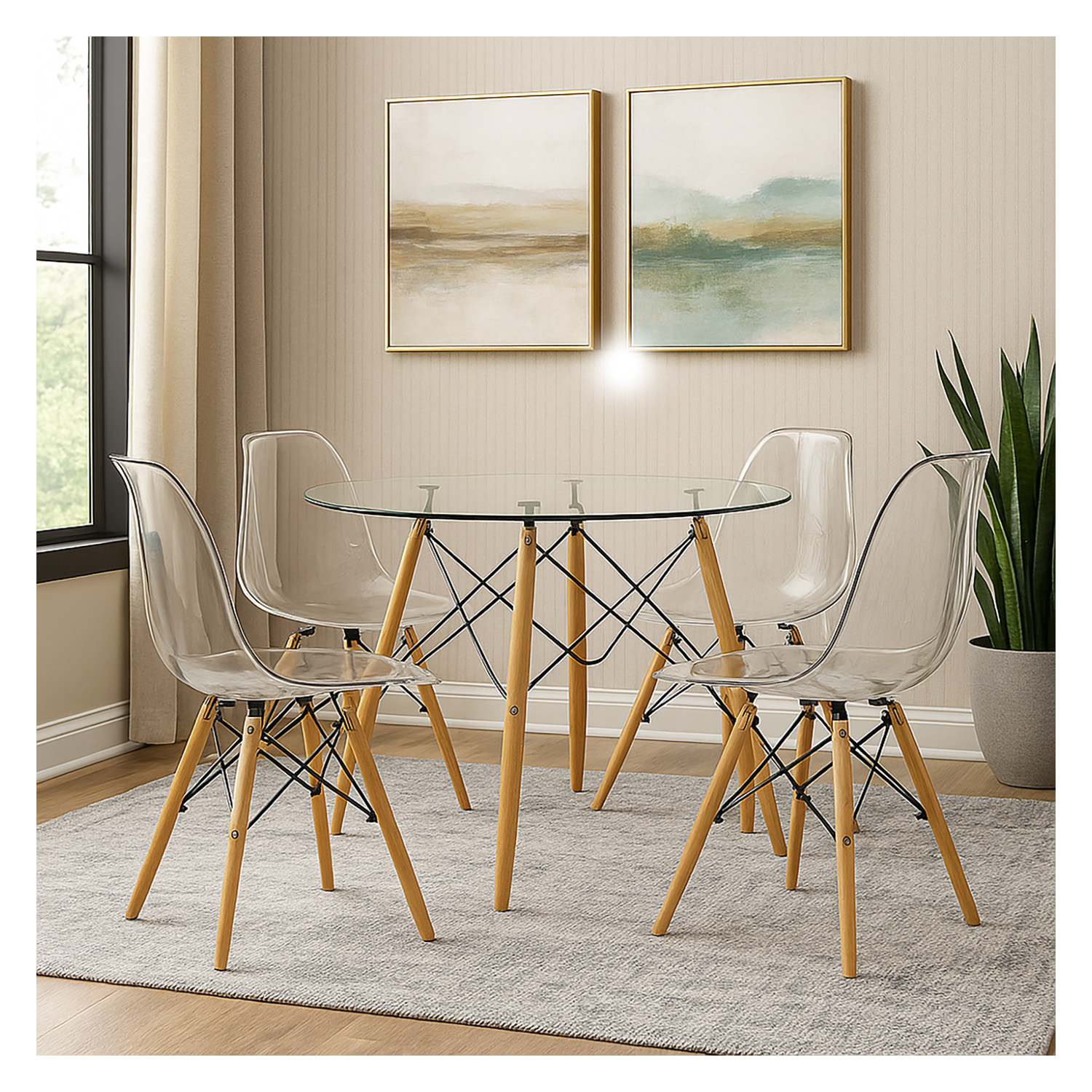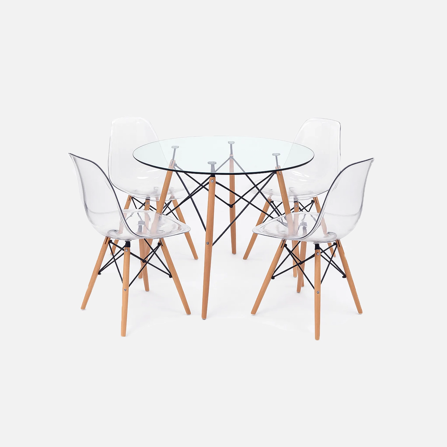 Juego de Comedor 4 Puestos Redondo Pegaso – Transparencia, Estabilidad y Diseño Contemporáneo