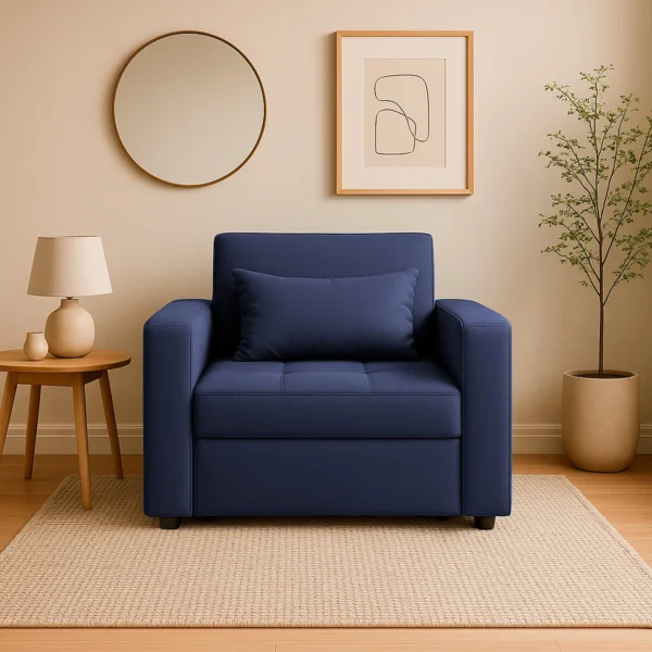 La Poltrona Cama California combina un diseño elegante con la practicidad que requieren los hogares y oficinas actuales. Ideal para optimizar espacios, ofrece la comodidad de un asiento durante el día y la versatilidad de una cama acogedora en la noche.