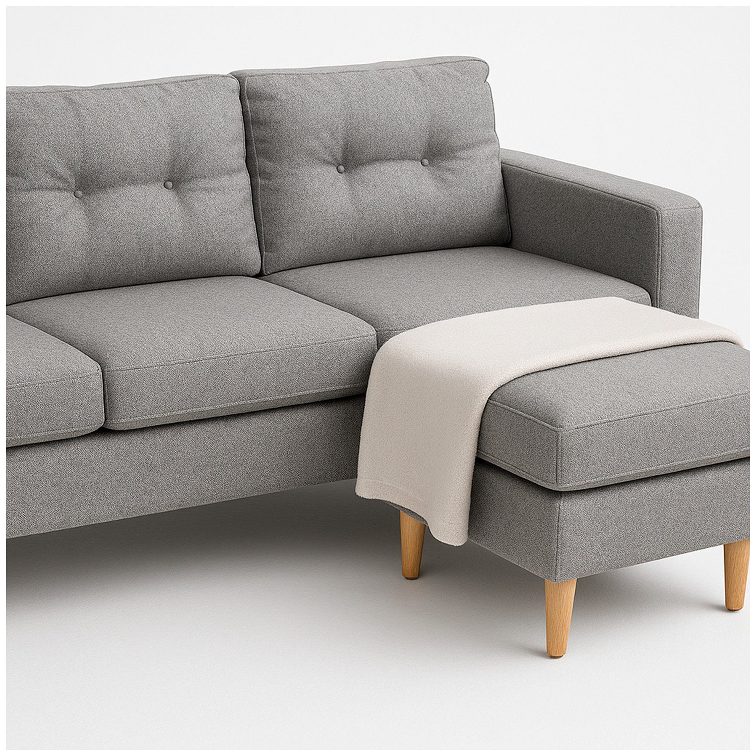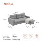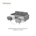 • Modular y adaptable: cambia el lado de la “L” o úsala como sofá + puff.