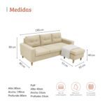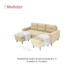 - Modular y adaptable: cambia el lado de la “L” o úsala como sofá + puff.