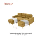 - Modular y adaptable: cambia el lado de la “L” o úsala como sofá + puff.