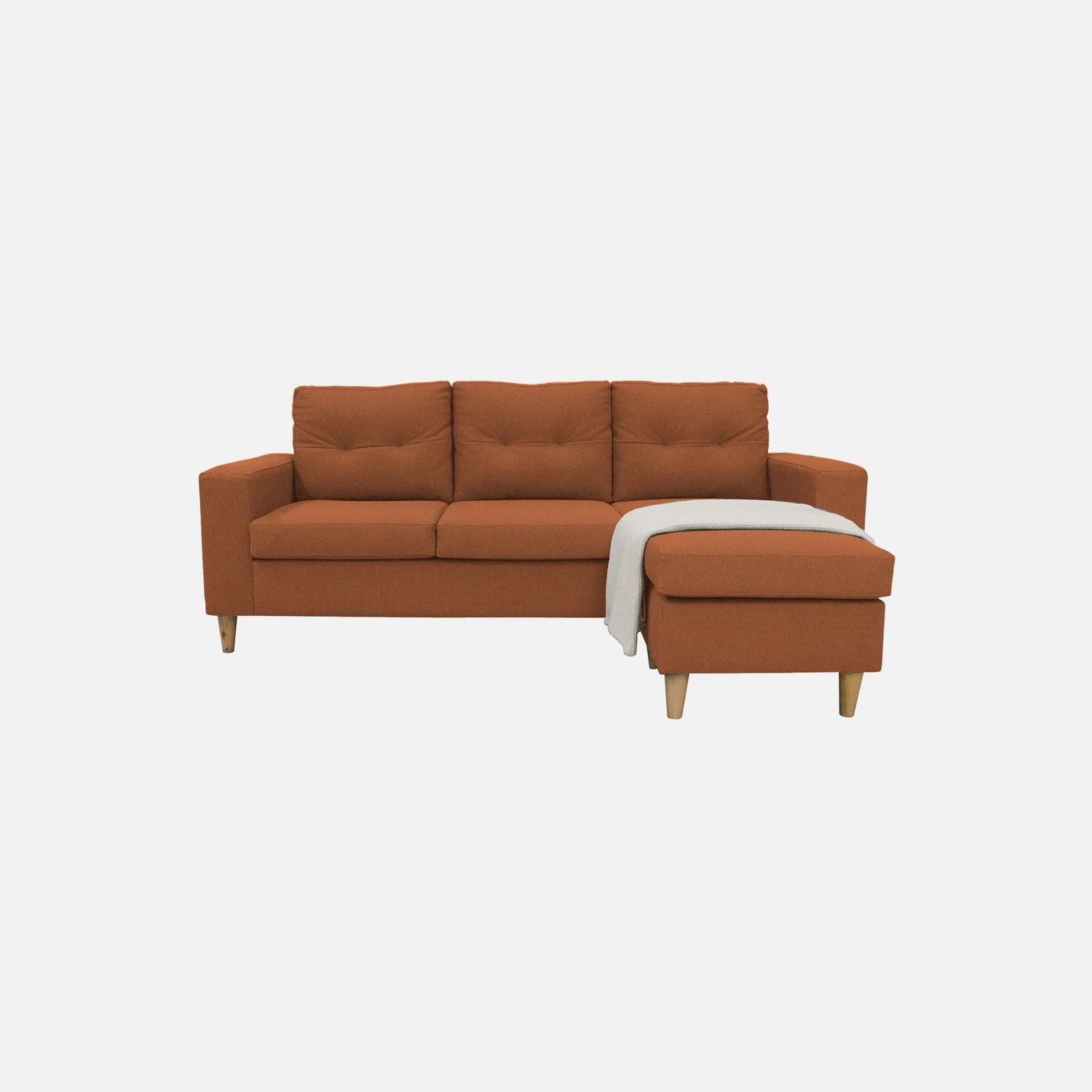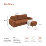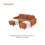 - Modular y adaptable: cambia el lado de la “L” o úsala como sofá + puff.