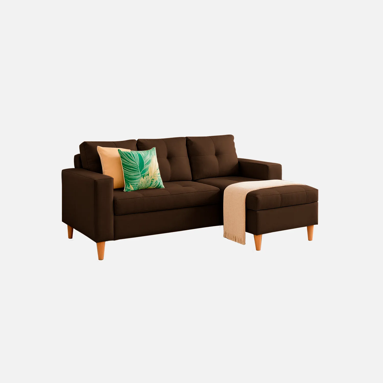 Nota: El color del mobiliario mostrado en pantalla puede variar ligeramente según la iluminación del ambiente o la configuración de tu dispositivo. Con la Sala en L Viena, disfrutarás de un mueble moderno, cómodo y con un aire de sofisticación inspirado en el estilo vienés, pensado para convertirse en el centro de atención de tu espacio. La venta incluye únicamente el mueble (módulo chaise longue y sofá) sus respectivas patas en madera; no se incluyen elementos decorativos. Conoce como puedes decorar tu espacio, cuidar tus muebles y descubrir las manos colombianas que lo fabrican en nuestras redes sociales.