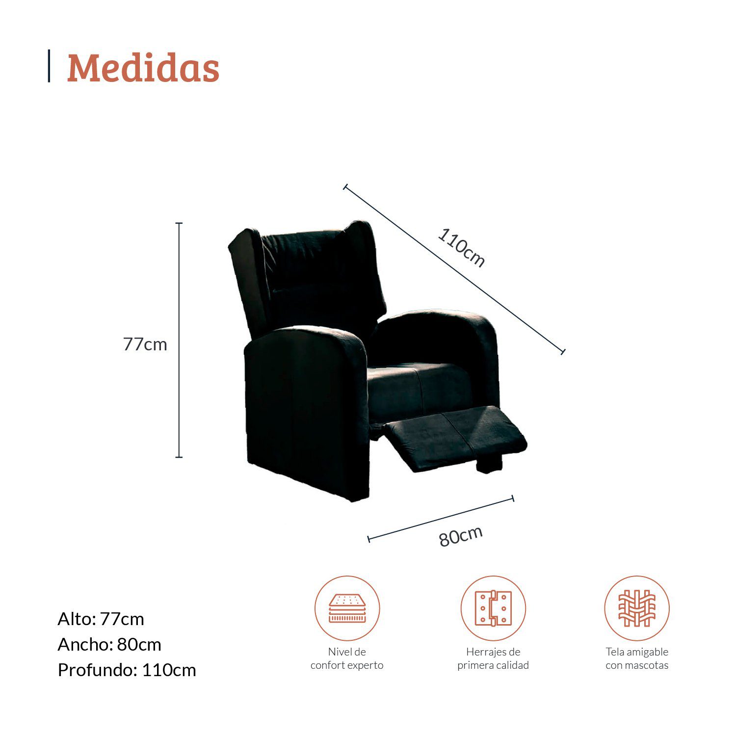 Nota: El color del mobiliario mostrado en pantalla puede variar ligeramente según la iluminación del ambiente o la configuración de tu dispositivo. Con la Silla Reclinable Apolo, disfrutarás de un descanso digno de un dios, combinando comodidad y un diseño clásico que eleva tu hogar. La venta incluye únicamente el sillón reclinable y sus correspondientes patas; no se incluyen elementos decorativos. Conoce como puedes decorar tu espacio, cuidar tus muebles y descubrir las manos colombianas que lo fabrican en nuestras redes sociales.