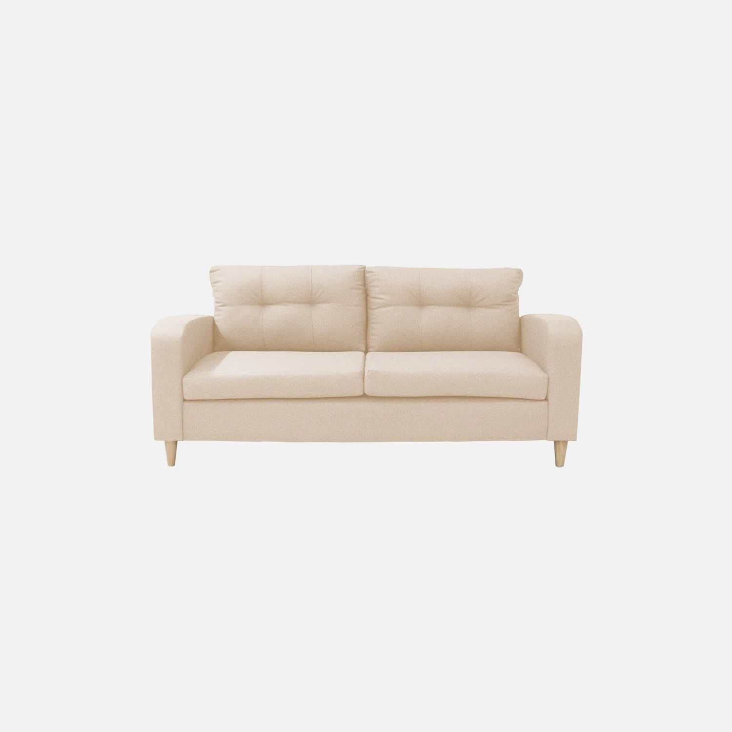 Sofá Brisa de 2 puestos, compacto y moderno. Ideal para salas pequeñas o estudios. Estructura en pino, espaldar capitoneado y tapizado de alta calidad. Hecho en Colombia.