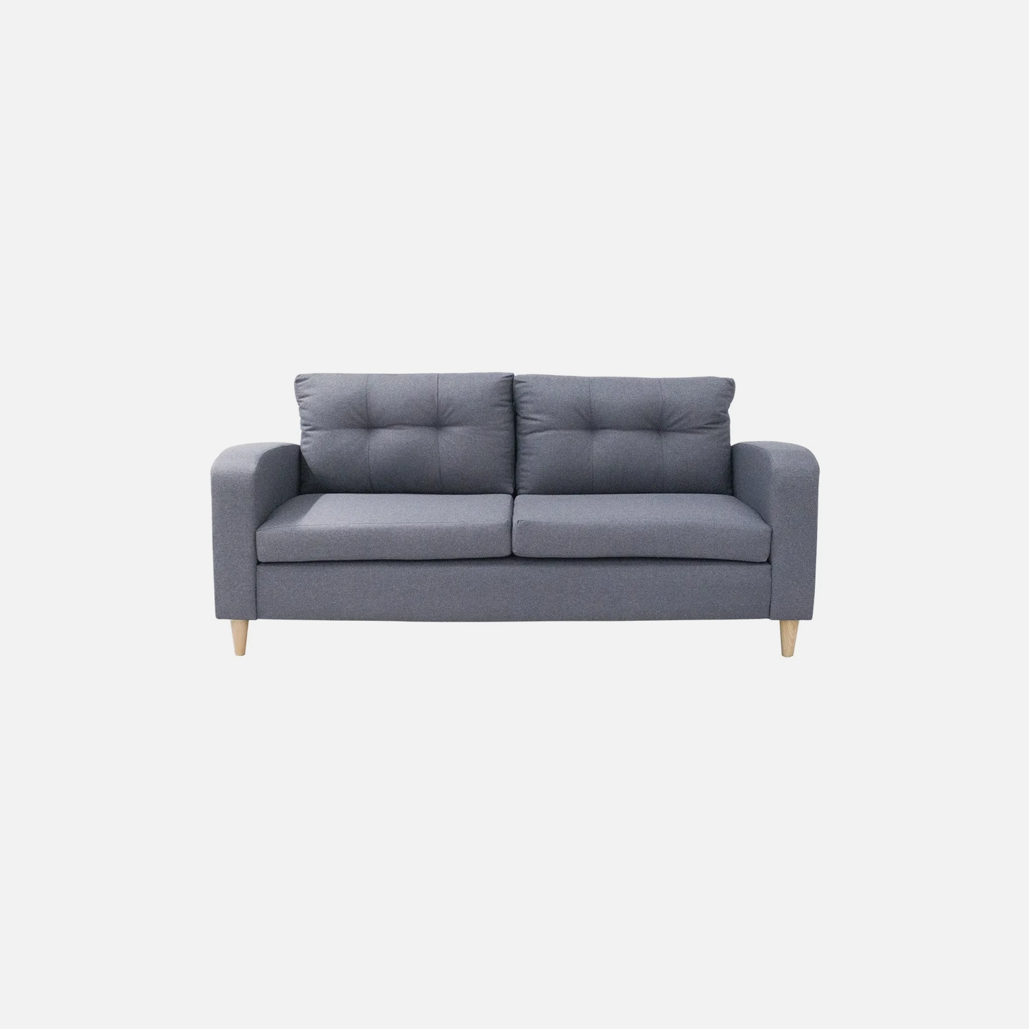 Sofá Brisa de 2 puestos, compacto y moderno. Ideal para salas pequeñas o estudios. Estructura en pino, espaldar capitoneado y tapizado de alta calidad. Hecho en Colombia.