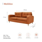 Sofá Brisa de 3 puestos, compacto y moderno. Ideal para salas pequeñas o estudios. Estructura en pino, espaldar capitoneado y tapizado de alta calidad. Hecho en Colombia.
