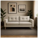 Su estructura sólida en madera de pino, combinada con patas en madera maciza y tapizado de alta calidad, garantiza resistencia y un acabado sofisticado. Un sofá que equilibra estilo, confort y durabilidad, pensado para integrarse en espacios contemporáneos que valoran el orden visual.