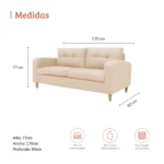 Sofá Brisa de 3 puestos, compacto y moderno. Ideal para salas pequeñas o estudios. Estructura en pino, espaldar capitoneado y tapizado de alta calidad. Hecho en Colombia.