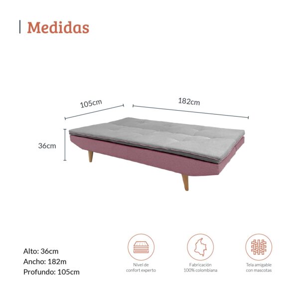 - Convertible: Pasa de un sofá elegante a una cama funcional con facilidad, ofreciendo un descanso cómodo para invitados.