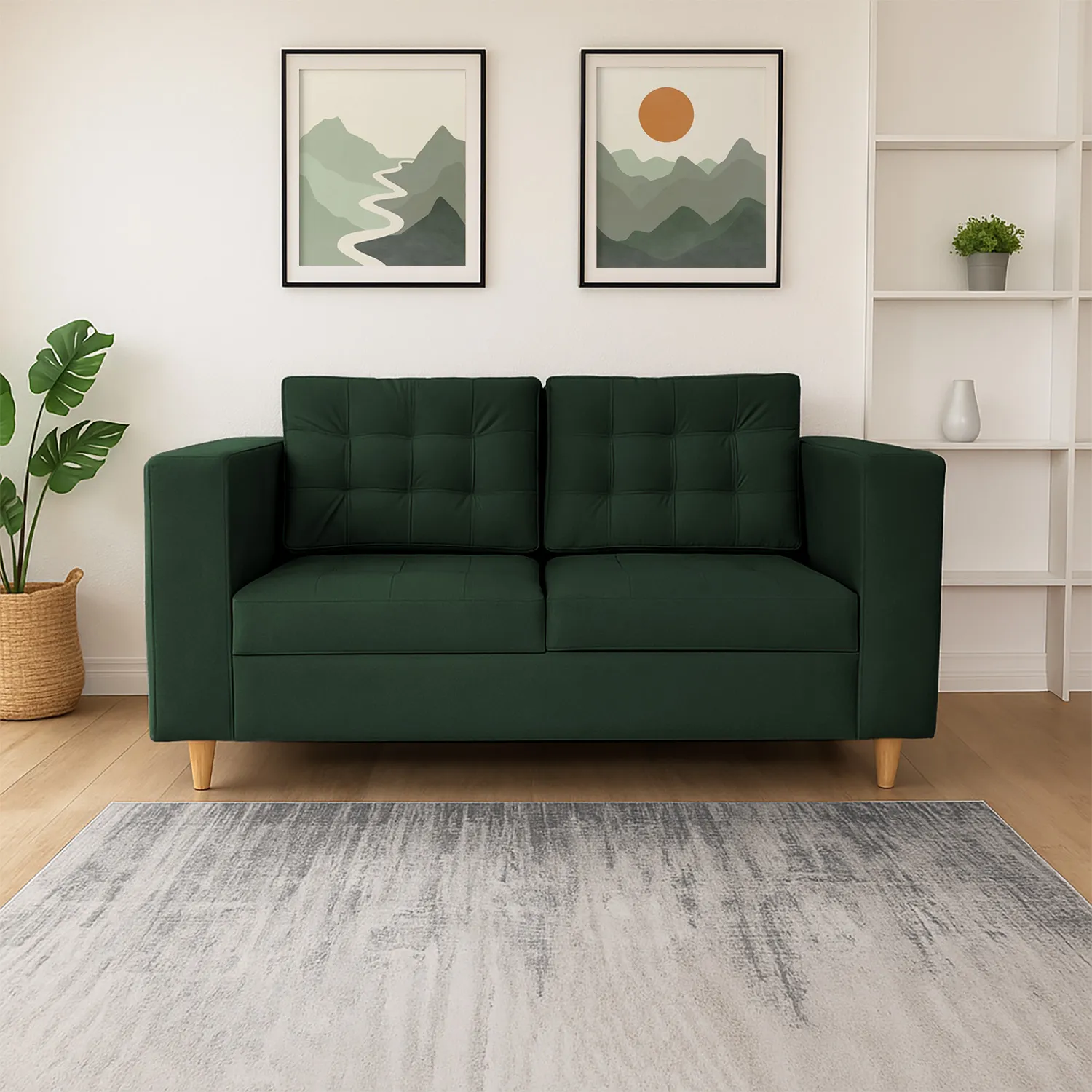 Sofá Honey 2 puestos moderno y compacto con espaldar capitoneado y diseño elegante. Ideal para salas pequeñas, estudios y rincones especiales. Hecho en Colombia.