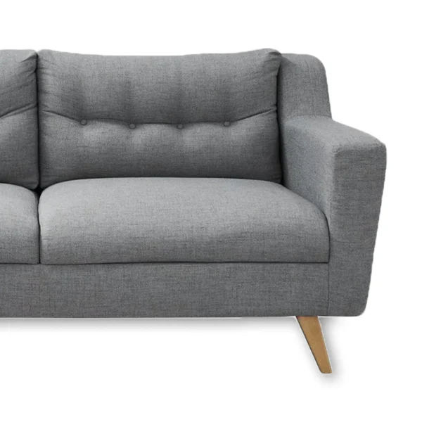 Sofá Loto 3 puestos con diseño compacto y espaldar capitoneado. Ideal para salas pequeñas y estudios. Estilo elegante y estructura resistente. Hecho en Colombia.