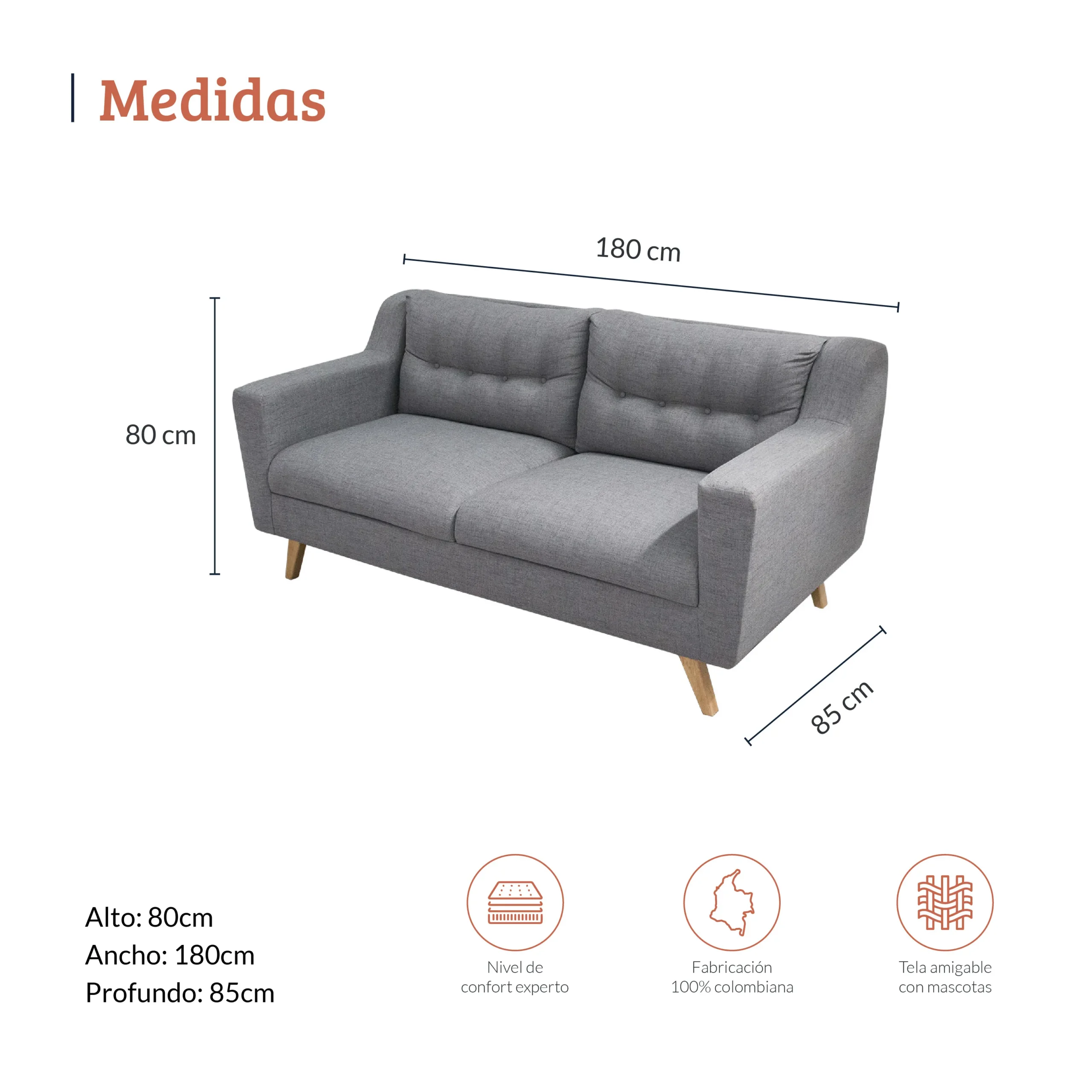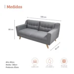Dimensiones: Alto 80 cm × Ancho 180 cm × Profundidad 85 cm.