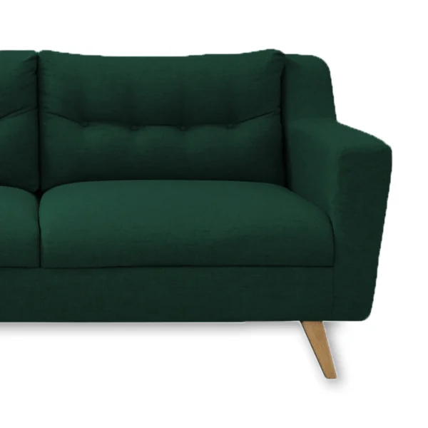 Sofá Loto 3 puestos con diseño compacto y espaldar capitoneado. Ideal para salas pequeñas y estudios. Estilo elegante y estructura resistente. Hecho en Colombia.