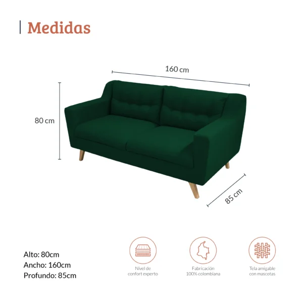 • Dimensiones: Alto 80 cm × Ancho 180 cm × Profundidad 85 cm.