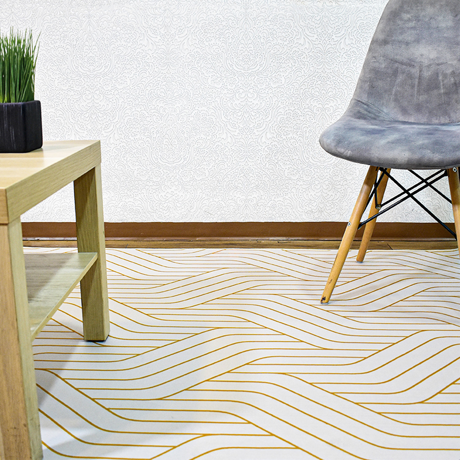 - Diseño con ritmo visual: ondas en tonos cálidos que añaden movimiento y armonía al espacio.